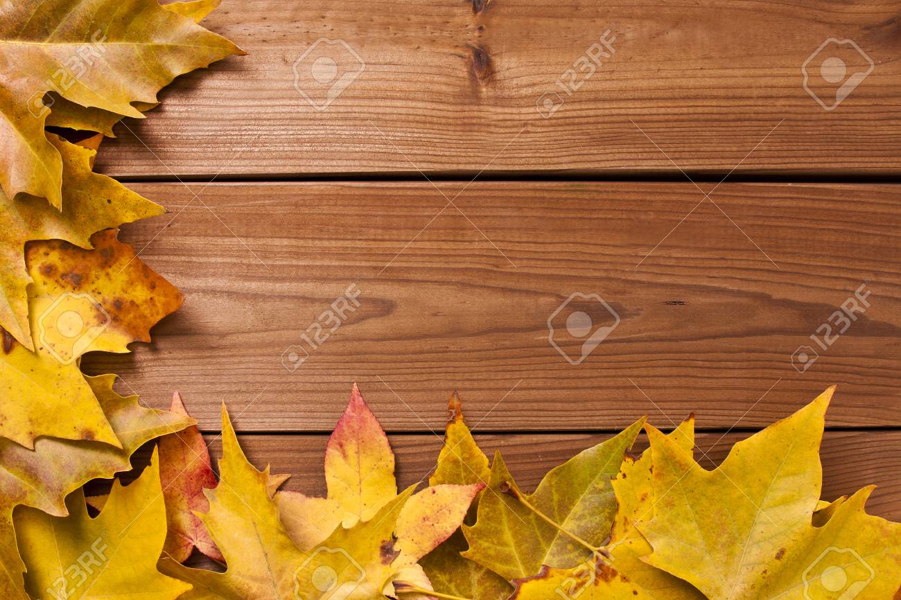 Fondo De Pantalla De Otono Hojas De Frontera Sobre Fondo De Madera Fotos Retratos Imagenes Y Fotografia De Archivo Libres De Derecho Image 81072044